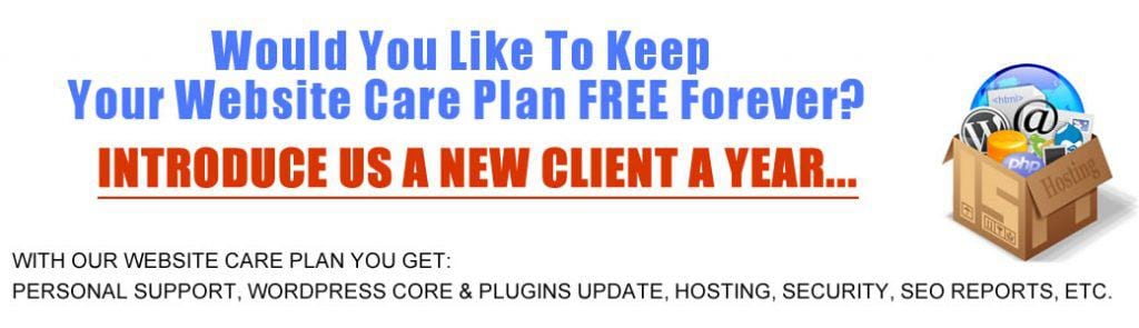 • Introduce us a friend a year, and you will keep your Website Care Plan forever FREE!*